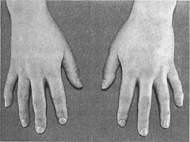 Симметричный артрит лучезапястных суставов почти неизменно присутствует при ревматоидном артрите. Припухлость в области шиловидного отростка локтевой кости и ограничение или утрата движений в лучезапястном суставе - ранние признаки ревматоидного артрита.