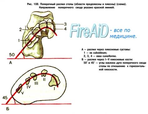 Поперечный свод стопы хорошо выражен в области головок плюсневых костей. В норме стопа опирается в переднем отделе только на головки крайних (I и V) плюсневых костей, головки II, III и IV плюсневых костей образуют выпуклый свод.