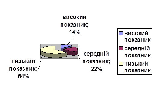 Досліджуючи рівень дересивності у породіль ми отримали такі дані. Високий рівень дересивності притаманний 14% досліджуваних, середній рівень 22% і низький рівень 64%породіль які народжували самі.
