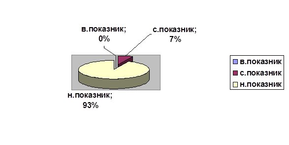 Досліджуючи депресивність у жінок які народжували у сімейних пологах високого показника депресивності не було виявлено (рис. 8). Середній показник депресивності був продіагностований у 7% досліджуваних, а у 93% породіль з даної вибірки простежуєтся низький рівень депресивності.