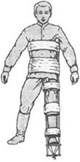 При переломе костей голени - накладывают три лестничных шины: одна - по задней поверхности голени и по подошвенной поверхности стопы, предварительно изогнутую таким образом, чтобы стопа была под углом 90° к оси голени, верхний конец должен доходить до середины бедра; вторая и третья накладываются с наружной и внутренней стороны конечности с основания стопы до середин бедра.