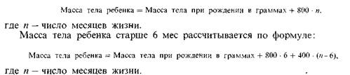 Первоначальная масса тела новорожденного удваивается к 4 мес жизни и утраивается к 10— 11 мес. Должную массу тела ребенка любого месяца жизни до 1 года можно вычислить также следующим образом: к массе тела ребенка при рождении прибавляют за 1-й месяц 600 г, за 2-й и 3-й месяцы — по 800 г, масса тела каждого последующего месяца на 50 г меньше таковой по сравнению с предыдущим месяцем.