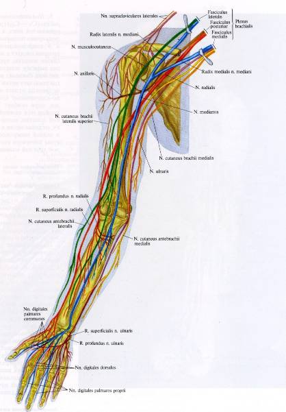 Плечевое сплетение, и нервы свободной части верхней конечности, правой; внутренняя поверхность.