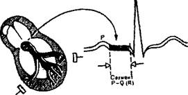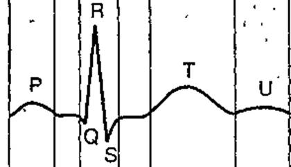 Р-зубец соответствует сокращению предсердий, вызванному электрическим импульсом, который возникает в синоатриальном узле и по проводящей системе сердца достигает предсердий; P-R - интервал соответствует возбуждению атриовентрикулярного узла, aQRS - комплекс - сокращению желудочков; Т-зубец соответствует фазе восстановления желудочков. С помощью ЭКГ могут быть установлены различные нарушения в проводящей системе сердца, а, следовательно, и их причины.