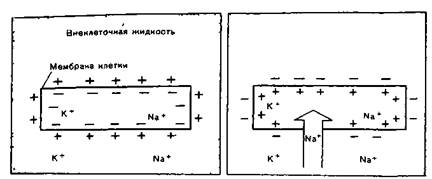 2) отрицательно - в клетке, находящейся в состоянии возбуждения в