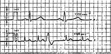 Мониторное электрокардиографическое наблюдение наиболее часто используют при остром инфаркте миокарда. Его проводят обычно в отделениях или палатах интенсивной терапии в первые дни после возникновения инфаркта, при наличии преходящих нарушений ритма и проводимости, которые требуют срочных терапевтических мероприятий, а также для уточнения диагноза аритмии. Кроме того, его используют иногда при проведении массивной противоаритмической или сердечной терапии, а также при применении отдельных диагностических процедур, которые могут приводить к возникновению аритмий (например, проба с физической нагрузкой, зондирование сердца, ангиокардиография и т. д.). Нередко ЭКГ записывают на магнитную ленту, что позволяет вводить и анализировать ЭКГ с помощью ЭВМ.