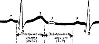 Иногда на ЭКГ, особенно в правых грудных отведениях, сразу после зубца T регистрируется небольшой положительный зубец U, происхождение которого до сих пор неизвестно. Есть предположения, что зубец U соответствует периоду кратковременного повышения возбудимости миокарда желудочков (фаза экзальтации), наступающему после окончания электрической систолы левого желудочка.