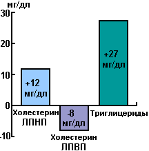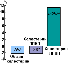 | Класс препаратов | Общий холестерин | Холестерин ЛПНП | Холестерин ЛПВП | ТГ |