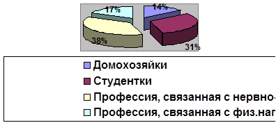 Среди профессиональных особенностей 38% связано с нервно-психическим перенапряжением.
