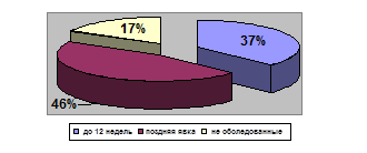 Поздная явка в женскую консультацию частота гестоза выявлена в 46% случаев.