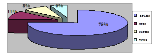 Наиболее часто reстоз осложняет беременность при зачатии весной (20%).