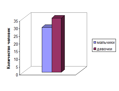 Наблюдения велись в медицинском кабинете гимназии. Было обследовано 64 ученика 1-3 класса, из которых 29 мальчиков и 35 девочек (рис.2.). По возрасту ученики были распределены поровну.