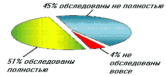 Сохраняются известные, подчас очень большие, диспропорции в составе санаторного контингента больных. Так, кардиологические больные составляют около 50%, больные с заболеваниями желудочно-кишечного тракта — 12%, а с заболеваниями органов дыхания — не более 5%, хотя по распространенности среди населения эти заболевания не много уступают одно другому. Причины — дефекты санаторно-курортного отбора в поликлиниках, а также недостатки диагностики в самих санаториях. (Рис.1).