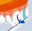 Для чистки внутренних поверхностей передних зубов поверните зубную щетку как показано на рисунке, производя аналогичные круговые движения. |