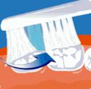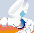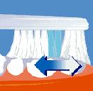 Расположите головку зубной щетки под углом 45о С к линии десны. Делайте короткие круговые движения, почти не передвигая концы щетинок. При этом длинные внешние щетинки будут удалять налет из-под десневой линии и между зубами. |