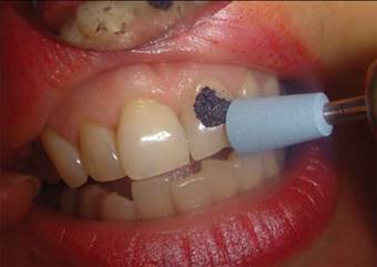 Техника проведения микроабразии достаточно проста. Абразивное средство помещают в резиновую чашечку и медленными вращениями наконечника втирают в эмаль. Зуб периодически промывают водой. В процессе микроабразии необходимо контролировать все поверхности зуба, чтобы не было значительного истончения эмали. Как правило, данную процедуру осуществляют в одно посещение. После микроабразии формируется поверхностный беспризменный слой, который хорошо передает блеск и прозрачность эмали.
