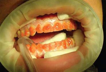 2. Ткани десны лучше покрыть герметиком типа "Орасил", причем наносить его следует как с вестибулярной, так и с оральной стороны.