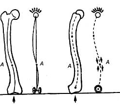 Рис. 1. Деформация бедренной кости при продольном изгибе: