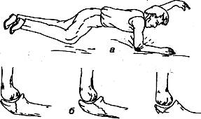 б — падение вперед на вытянутую вперед руку