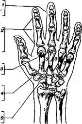 Переломы костей кисти (рис. 11) и пальцев составляют до 1 /8 переломов всех костей. Повреждения кисти могут относиться не только к кожным покровам, но и костям, мышцам, сухожилиям, а также нервам и сосудам.