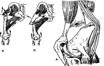 На рис. 30 показан механизм повреждения крестообразных связок.