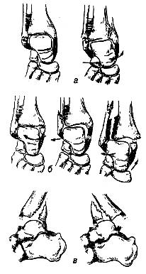 Рис. 33. Переломы таранной кости: а — шейки,