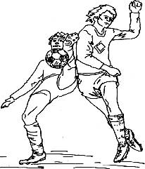 Такой механизм травмы типичен для футбола (рис. 24), дзюдо, самбо, горнолыжного спорта, баскетбола, гандбола и др. Действие сил в зонах, расположенных ниже границы разрыва суставной сумки и связок, гиалинового суставного хряща и волокнистого хряща менисков при повторных микротравмах может привести к дегенеративным тканевым изменениям.