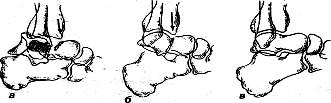 Переломы таранной кости (рис. 33). Механизм перелома, как правило, непрямой — падение с высоты на ноги, резкое торможение автомашины при упоре ступнями в ее пол или рычаги управления и т. д.
