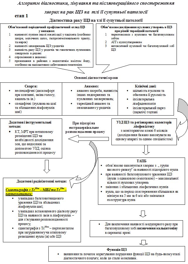 Науково обґрунтований алгоритм діагностики, лікування та післяопераційного спостереження прооперованих хворих на рак щитоподібної залози на тлі супутньої патології.