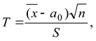 Правило 1 . Для того, чтобы при заданном уровне значимости α проверить нулевую гипотезу H0 : а=а0 о равенстве неизвестной генеральной средней а гипотетическому значению а0 при конкурирующей гипотезе H1 : а≠а0 , надо вычислить наблюдаемое значение критерия