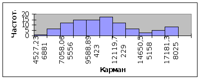 Рис 2 . Гистограмма рассеивания относительных частот для X