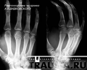 Диагностика переломов фаланг не вызывает больших затруднений. Во-первых, для этих переломов характерен механизм травмы. Во-вторых, вследствие того, что с тыльной стороны фаланги покрыты тонким слоем мягких тканей, несмотря на припухлость, отчетливо видна деформация фаланги. Некоторые трудности возникают при распознавании переломов без смещения, трещин и внутрисуставных переломов. Однако в этих случаях механизм травмы позволяет заподозрить повреждение кисти.