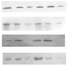 Детекцію ізоформ ПКС, каспази-3, протеїнкіназ, що активуються мітогенами, факторів транскрипції проводили імуноблот-аналізом із використанням моноклональних антитіл [Kurien, Scofield, 2006]. Розділені методом електрофорезу у поліакриламідному гелі за присутності додецилсульфату натрію білки [Laemmli, 1970] переносили на нітроцелюлозну мембрану напівсухим способом. Після інкубації з первинними і вторинними антитілами імунні комплекси візуалізували за допомогою реагенту ECL. Після денситометричного визначення інтенсивності засвічення плівки HyperfilmECL результати обробляли у програмі "PhotoCaptMw".
