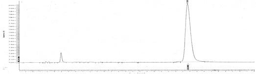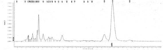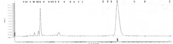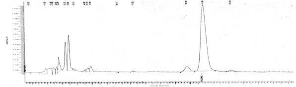 На рис. 5 представлені хроматограми фітокомпозиції „Кардіосед” та контрольної фітокомпозиції, що відрізняється за складом від „Кардіоседу” відсутністю трави кульбаби лікарської. Хроматограми відрізняються одна від другої тим, що на хроматограмі фітокомпозиції “Кардіосед” присутній пік цикорієвої кислоти, на хроматограмі ж контрольної фітокомпозиції вказаний пік відсутній.