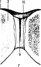 Шов, sutura, - разновидность фиброзного соединения, в котором между краями соединяющихся костей имеется узкая соединительнотканная прослойка. Соединение костей швами встречается только в черепе. В зависимости от конфигурации краев соединяющихся костей выделяют зубчатый шов, sutura serrata; чешуйчатый шов, sutura squamosa, и плоский шов, sutura plana. У зубчатого шва зазубренные края одной кости входят в промежутки между зубцами края другой кости, а прослойкой между ними является соединительная ткань. Если соединяющиеся края плоских костей имеют косо срезанные поверхности и накладываются друг на друга в виде чешуи, то образуется чешуйчатый шов. В плоских швах с помощью тонкой соединительнотканной прослойки соединяются между собой ровные края двух костей.