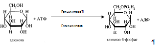 1. Фосфорилирование глюкозы и образование глюкозо-6-фосфата – перенос остатка ортофосфата на глюкозу за счет энергии АТФ. Катализатором является гексокиназа. Этот процесс был рассмотрен выше.