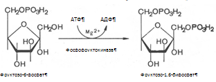 Реакция необратима, протекает в присутствии ионов магния и является наиболее медленно текущей реакцией гликолиза.