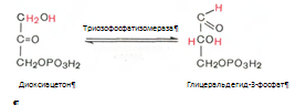 5. Реакция изомеризации триозофосфатов. Катализируеися ферментом триозофосфатизомеразой: