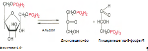 4. Под влиянием фермента альдолазы фруктозо-1,6-бифосфат расщепляется на две фосфотриозы: