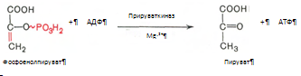 10. Разрыв макроэргической связи и перенос фосфатного остатка от фосфоенолпирувата на АДФ. Кртализируется ферментом пируваткиназой: