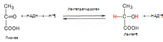11. Восстановление пировиноградной кислоты и образование молочной кислоты (лактата). Реакция протекает при участии фермента лактатдегидрогеназы и кофермента НАД*Н2, образовавшегося в шестой ркакции: