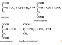 Превращение пирувата в фосфоенолпируват (необратимая стадия I) осуществляется при участии двух ферментов: пируваткарбоксилазы и карбоксикиназы фосфоенолпирувата: