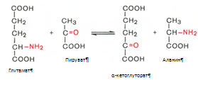 Трансаминирование аминокислот. Под трансаминированием подразумевают реакции межмолекулярного переноса аминогруппы (NH2—) от аминокислоты на б-кетокислоту без промежуточного образования аммиака. Реакции трансаминирования являются обратимыми и протекают при участии специфических ферментов аминотрансфераз, или трансаминаз.