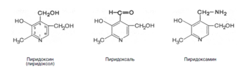 Хотя все три производных 3-оксипиридина наделены витаминными свойствами, коферментные функции выполняют только фосфорилированные производные пиридоксаля и пиридоксамина. Фосфорилирование пиридоксаля и пиридоксамина является ферментативной реакцией, протекающей при участии специфических киназ. Синтез пиридоксальфосфата, например, катализирует пиридоксалькиназа:
