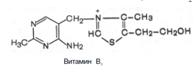 Витамин В1 (тиамин). В химической структуре его содержатся два кольца – пиримидиновое и тиазоловое, соединенных метиленовой связью. Обе кольцевые системы синтезируются отдельно в виде фосфорилированных форм, затем объединяются через четвертичный атом азота.