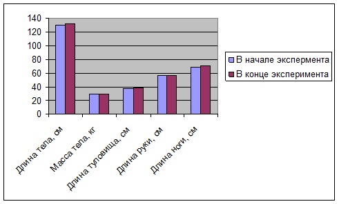 Следует отметить, что длина тела в период 9-10 лет у мальчиков в различных группах имеет различную динамику прироста Нами установлено, что по результатам эксперимента более высокие значения длины тела определяются в основной группе мальчиков в конце эксперимента. Сравнительная оценка показателей длины тела показывает, что в 9 лет у мальчиков основной группы рассматриваемая величина на 1-2 см больше, чем в контрольной группе.