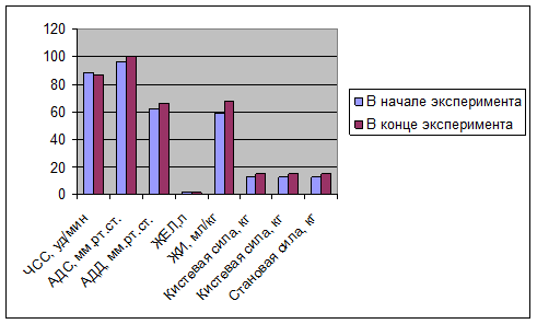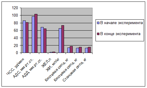 Оптимальная величина в физиометрических показателях мальчиков основной группы объясняется тем, что у них эффективно проявляются результаты внедренных комплексов здоровьеукрепляющих технологий. Следовательно, оздоровительные методики приводят к положительной перестройке основных гомеостатических показателей организма мальчиков.