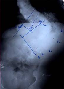 До сих пор в ортопедии принято множество методик измерения угла искривления позвоночника, и, соответственно, множество различных классификаций с разными величинами углов в градусах. Измеряется искривление так: на рентгенограмме надо провести несколько прямых линий между позвонками, а затем измерить углы между ними. В нашей стране наиболее распространена классификация, предложенная В.Д. Чаклиным. В иностранных научных источниках чаще приводится метод Дж. Кобба. Суть его заключается в следующем: на рентгеновском снимке позвоночника врач измеряет S-образное двойное искривление. В верхнем участке искривления с помощью линейки проводят две горизонтальные линии: одна над верхним позвонком, от которого идет кривизна, другая - над нижним. Если провести еще две линии, идущие перпендикулярно первым, образуется угол. Его и измеряют в градусах