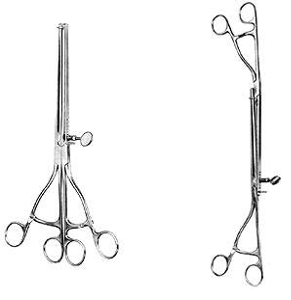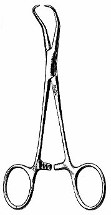 Зажим Микулича – используется для захвата листков брюшины и фиксации его к операционному белью, может применяться для тупферов. Зажим Микулича может быть изогнутым и прямым, но у него всегда самые длинные бранши.