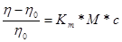 Для розведених розчинів ВМС із довгими молекулами Г. Штаудингер знайшов наступну залежність між в'язкістю і концентрацією речовини в розчині: